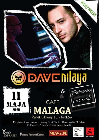 Cafe Malaga, Rynek Główny 11 zaprasza na koncert zespołu Dave Nilaya Duet, w składzie:
