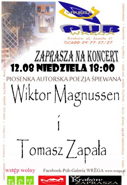 Victor Magnussen i Tomasz Zapała wystąpią w piątkowy wieczór w magicznym ogródku piwnym na Kazimierzu. Usłyszymy ballady po angielsku w wykonaniu gitarowym z elementami popu i rocka!