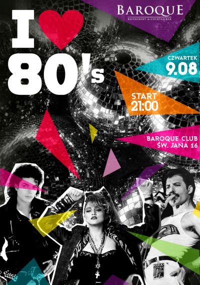 Tęsknisz za muzyką lat 80’tych? Madonną, Pet Shop Boys, Modern Talking, Bonnie Tyler, i innymi wykonawcami z tamtych lat? Jeżeli tak, to w najbliższy czwartek w Baroque Club będziesz mieć szansę usłyszeń ich największe przeboje, a to za sprawą wieczoru „I love 80’s”.