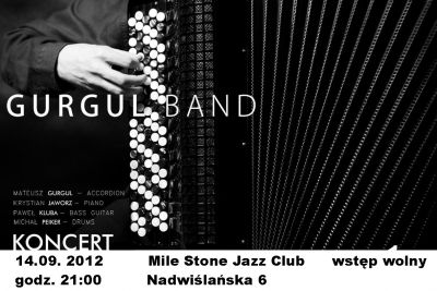 GURGUL BAND powstał w 2011 roku. W jego skład wchodzi czterech muzyków, absolwentów krakowskiej i katowickiej akademii muzycznej: Mateusz Gurgul – accordion, Krystian Jaworz – piano, Paweł Kluba – bass oraz Michał Peiker – drums. Mieszanka talentów, fascynacji oraz charakterów wpływa na oryginalność muzyki GURGUL BANDU, oscylującej pomiędzy jazzem a muzyką filmową. Obecnie zespół kończy nagrania do pierwszego albumu złożonego wyłącznie z autorskich kompozycji.