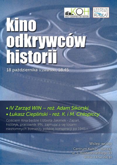 Zaprezentowane zostaną dwa filmy: "IV Zarząd WIN" oraz "Łukasz Ciepliński".