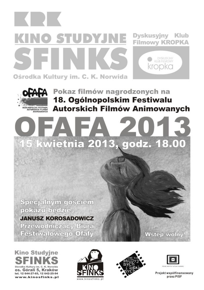 POKAZ FILMÓW NAGRODZONYCH NA 18. OGÓLNOPOLSKI FESTIWALU AUTORSKICH FILMÓW ANIMOWANYCH OFAFA 2013.