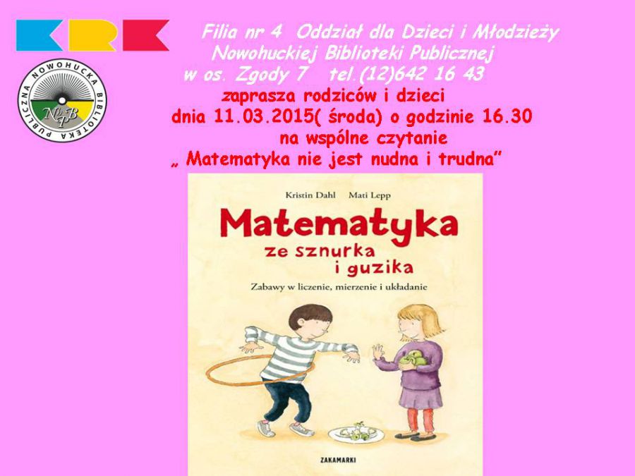 W cyklu: „Kroplówka z literatury” Wspólne czytanie dla dzieci i rodziców.