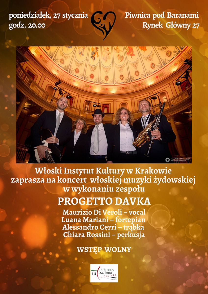 Koncert włoskiej muzyki hebrajskiej w wykonaniu zespołu PROGETTO DAVKA