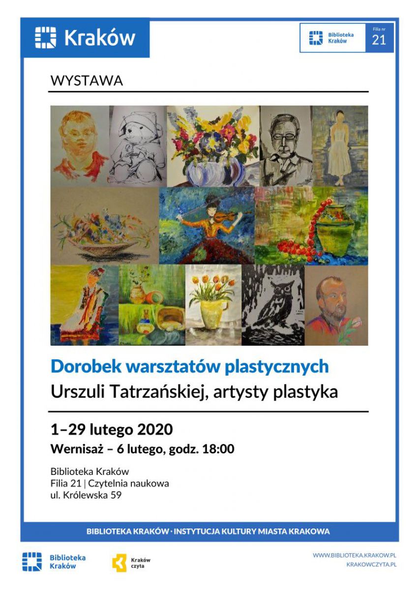 Wernisaż prac uczestników warsztatów plastycznych Urszuli Tatrzańskiej.