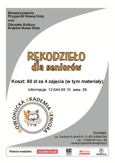 Nowohucka Akademia Seniora zaprasza na warsztaty rękodzieła artystycznego.