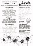 W programie ŻyWej Pracowni warsztaty z wielu dziedzin rzemiosła: plecionkarstwa, tkactwa, ceramiki, haftu, koronki, zdobienia drewna, garncarstwa, czerpania papieru, rzeźby i malarstwa a także tworzenia biżuterii, papier mache, filcowania i grafiki...