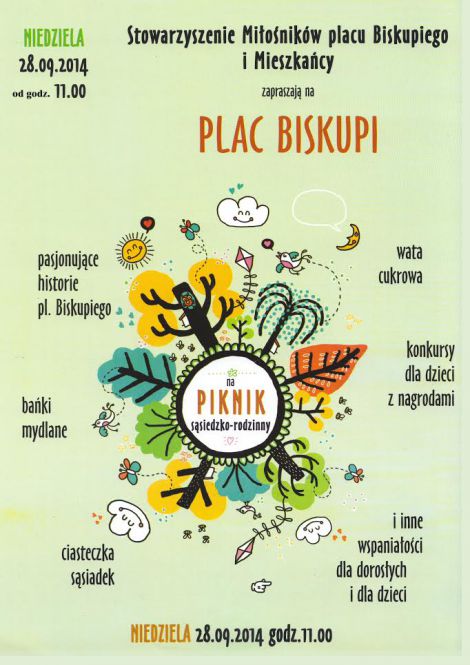 Stowarzyszenie mionikw placu Biskupiego wraz z Mieszkacami zaprasza na piknik ssiedzko - rodzinny :)
