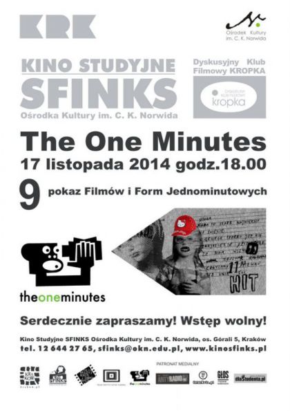 Pokaz najlepszych jednominutwek to zastrzyk emocji i dobrej zabawy dlatego - ju po raz dziewity Kino Studyjne Sfinks Orodka Kultury im. C. K. Norwida zaprasza do obejrzenia nagrodzonych i wyrnionych obrazw Festiwalu Filmw i Form Jednominutowych The One Minutes!