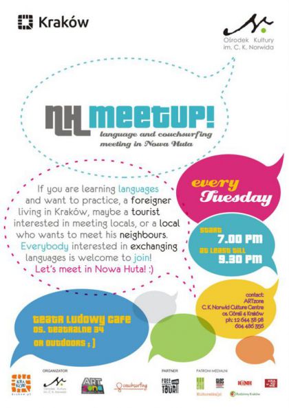 If you haven't meet us yet, don't hesistate to come. The meeting is a combination of a language and couchsurfing meeting. It is's open for everybody, for tourists, travelers, couchsurfers, and for non-couchsurfers. For those who want to improve their language skills or want to break fear in speaking. The atmosphere is informal, we exchange languages, ideas, stories, knowledge, phone numbers and smiles, chatting over an aromatic cup of coffe or te(...)  ... więcej »