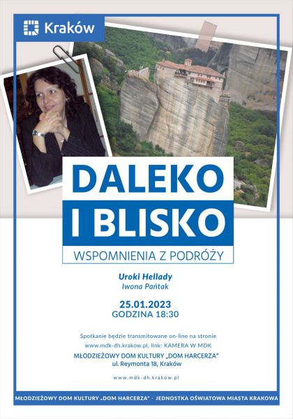 Cykl „Daleko i blisko” to niezwykłe spotkania z podróżnikami, fotografami, osobami ciekawymi świata i ludzi. Zapraszamy osoby, które chcą podzielić się swoimi wspomnieniami z podróży. Prezentujemy zdjęcia z wypraw, a zaproszeni prelegenci wzbogacają te pokazy swoimi opowiadaniami. Opowieści są dodatkowo okraszone poczęstunkiem na zakończenie spotkania. Serwujemy potrawy ściśle związane z omawianym miejsce czy regionem. Poczęstunek ten sponsoruje Dzielnica V – Krowodrza.