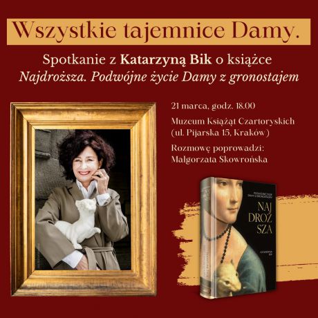 Wydawnictwo Znak zaprasza do Muzeum Książąt Czartoryskich w Krakowie na spotkanie z Katarzyną Bik, autorką książki „Najdroższa. Podwójne życie Damy z gronostajem”.