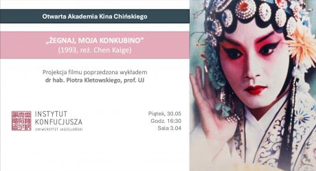„Żegnaj, moja konkubino" to jeden z najbardziej cenionych azjatyckich filmów wszech czasów, zachwycający kunsztownymi kostiumami i wizualnym rozmachem. W panoramiczną i wielopłaszczyznową historię filmu wprowadzi dr hab. Piotr Kletowski, profesor UJ, z Zakładu Korei IBiDW.