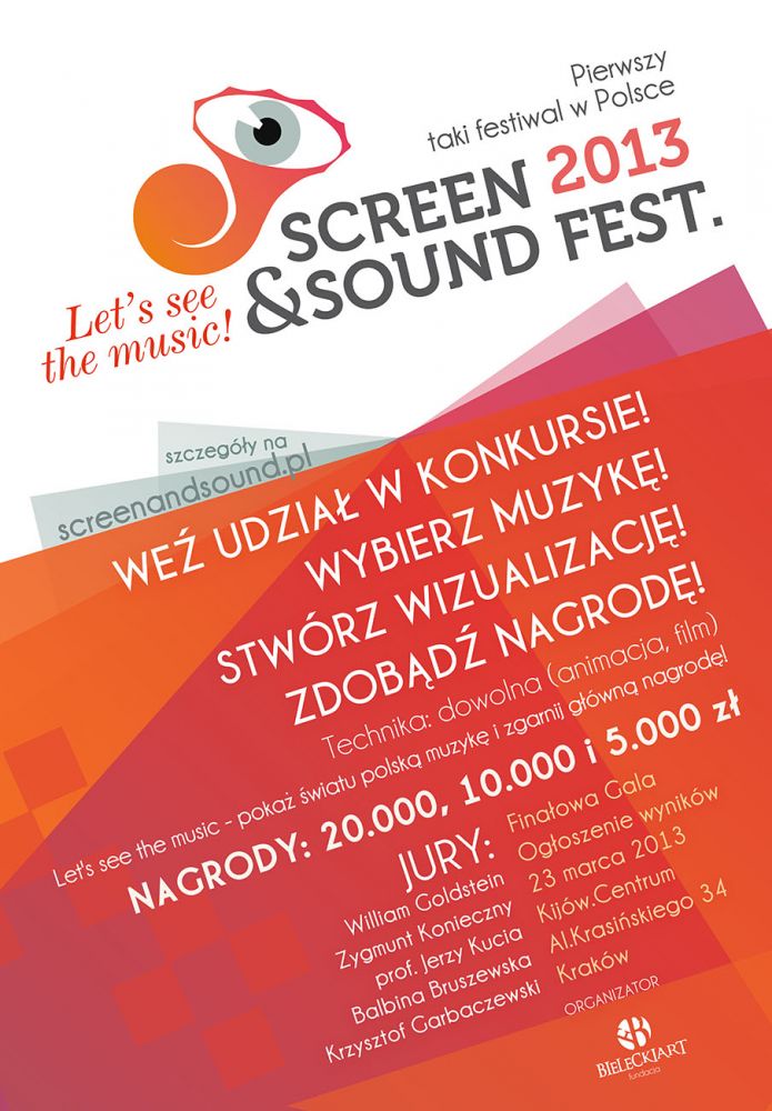 Konkurs z nagrodami finansowymi (20 000, 10 000 i 5 000 złotych) został ogłoszony w grudniu ub. roku. Wszystkie szczegóły oraz konkursowe utwory można znaleć na stronie: www.screenandsound.pl