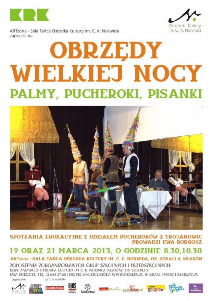 Podczas spotkania wystšpiš Pucheroki z Zielonek, ludowš muzykę zagra Wojciech Karwat, Janusz Oleszkiewicz z Muzeum Etnograficznego zaprezentuje prywatnš, bogatš i ciekawš kolekcję pisanek. Opowiemy o cudownych, bogatych, kocielnych, domowych i ludowych, obrzędach i zwyczajach wišt Wielkiej Nocy.