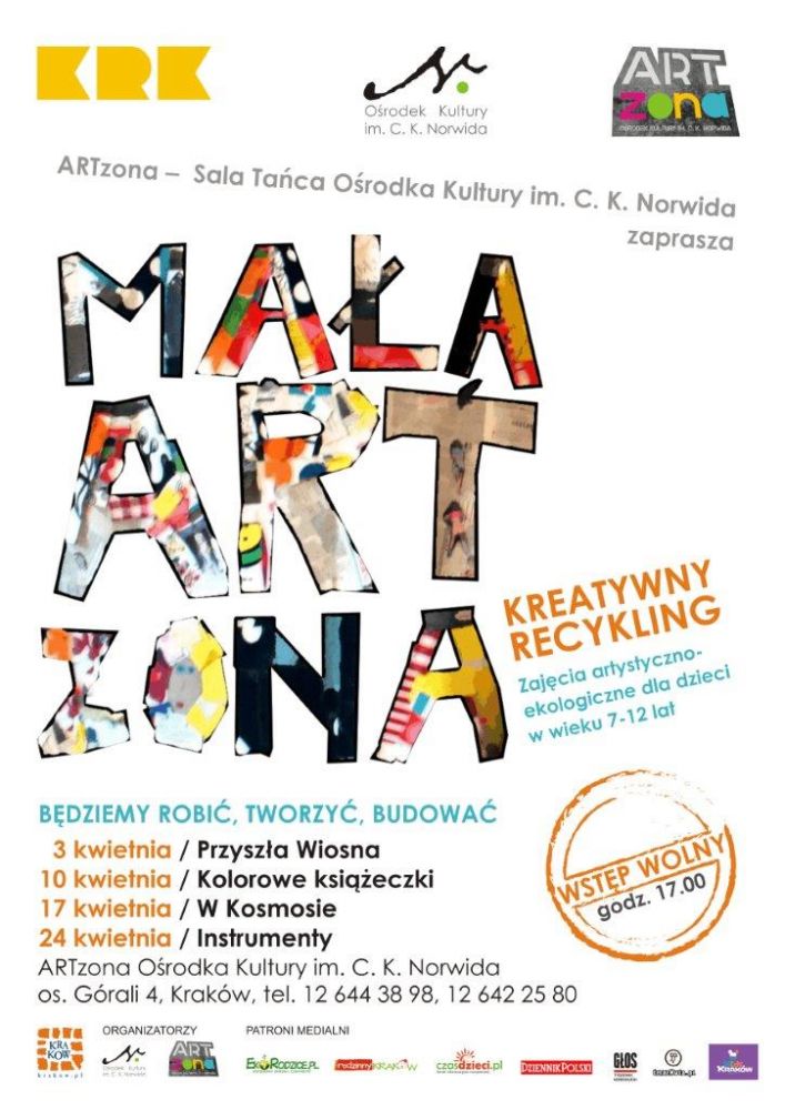 Mała ARTzona to artystyczno-ekologiczne zajęcia dla dzieci, wykorzystujšce kreatywne zabawy, upcykling, czyli wykorzystanie zużytych materiałów. Będziemy tworzyć zabawki, biżuterię i inne przedmioty. Pokażemy dzieciom jak przy odrobinie chęci można połšczyć oszczędnoć, pożytecznoć i wietnš zabawę!