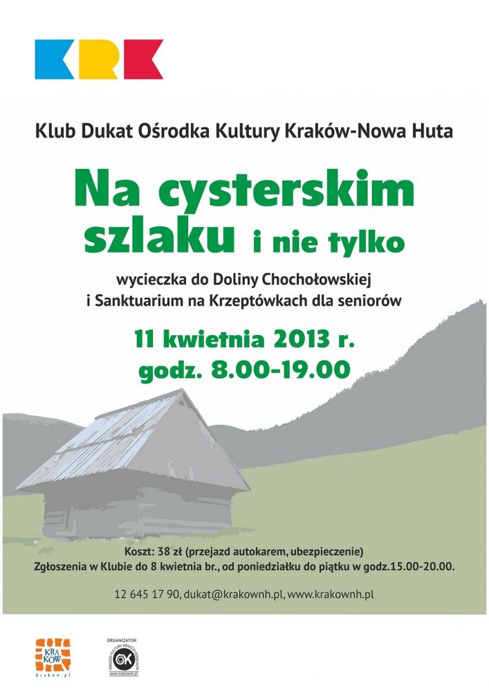 Informacje i zapisy w Klubie Dukat Orodka Kultury Kraków-Nowa Huta (ul. Styczna 1) - do 8.04. w Klubie (tel. 12 645 17 90).