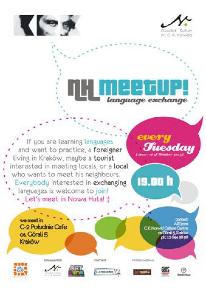 If you are learning languages and would like to practice, a foreigner living in Kraków, maybe a tourist interested in meeting locals, or a local who wants to meet others from neighborhood. Everybody interested in exchanging languages is welcome to join our meetings. We spend a great time getting to know each other and chatting over a coup of aromatic tea or coffee in C-2 Południe Café. Join us! Let’s meet in Nowa Huta 