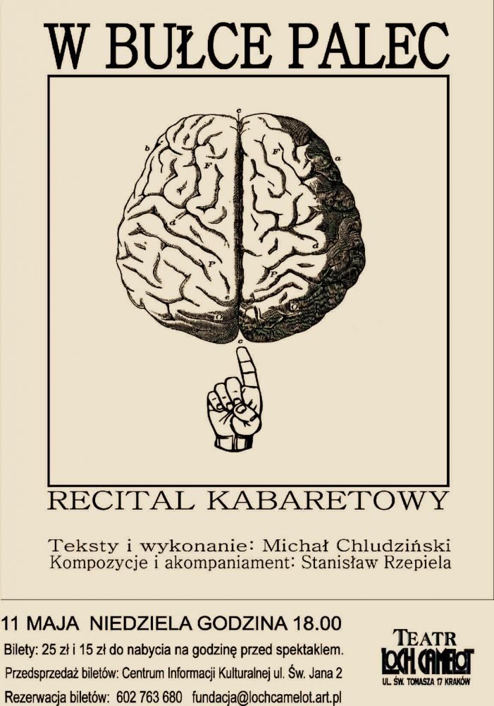"W bułce palec" recital kabaretowy Michała Chludzińskiego.