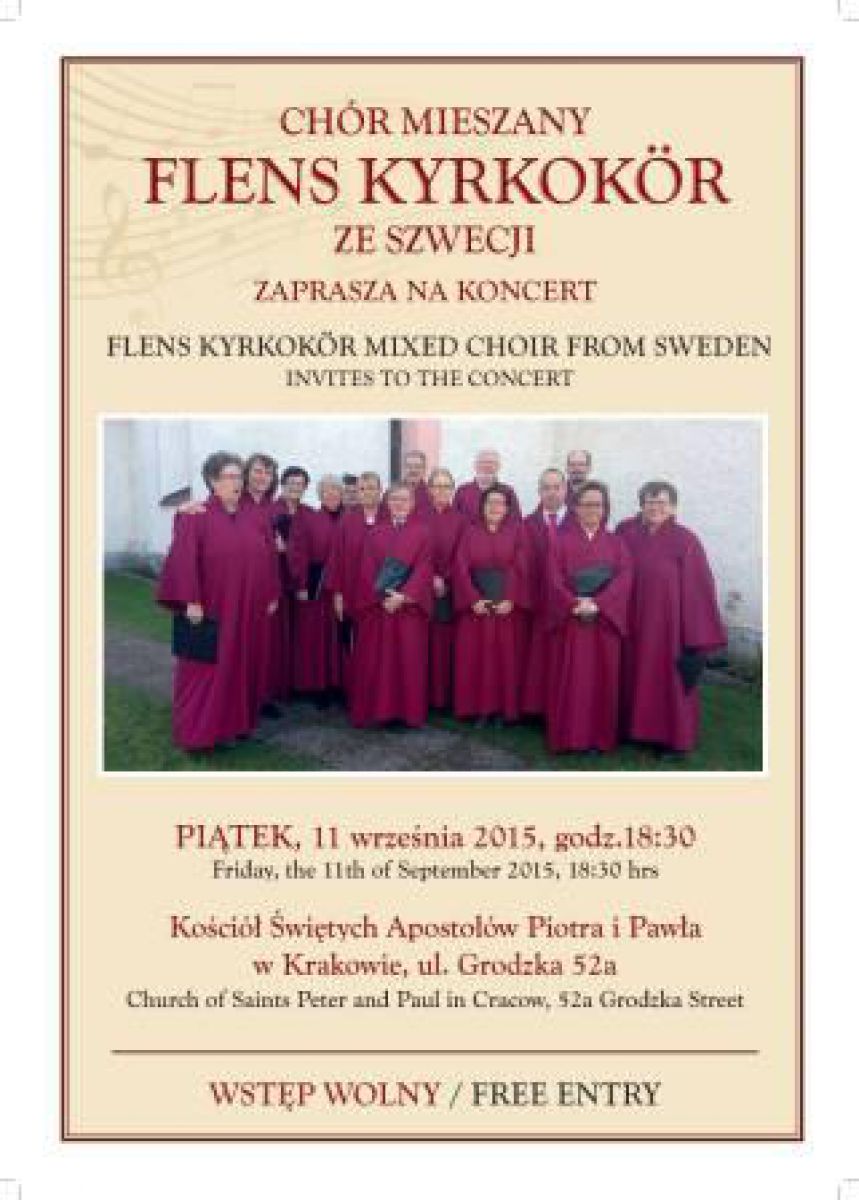 Flens Kyrkokör, chór mieszany z prowincji Södermanland zaœpiewa 11 wrzeœnia 2015 (pištek), o godz.18:30 w krakowskim Koœciele Œwiętych Apostołów Piotra i Pawła.