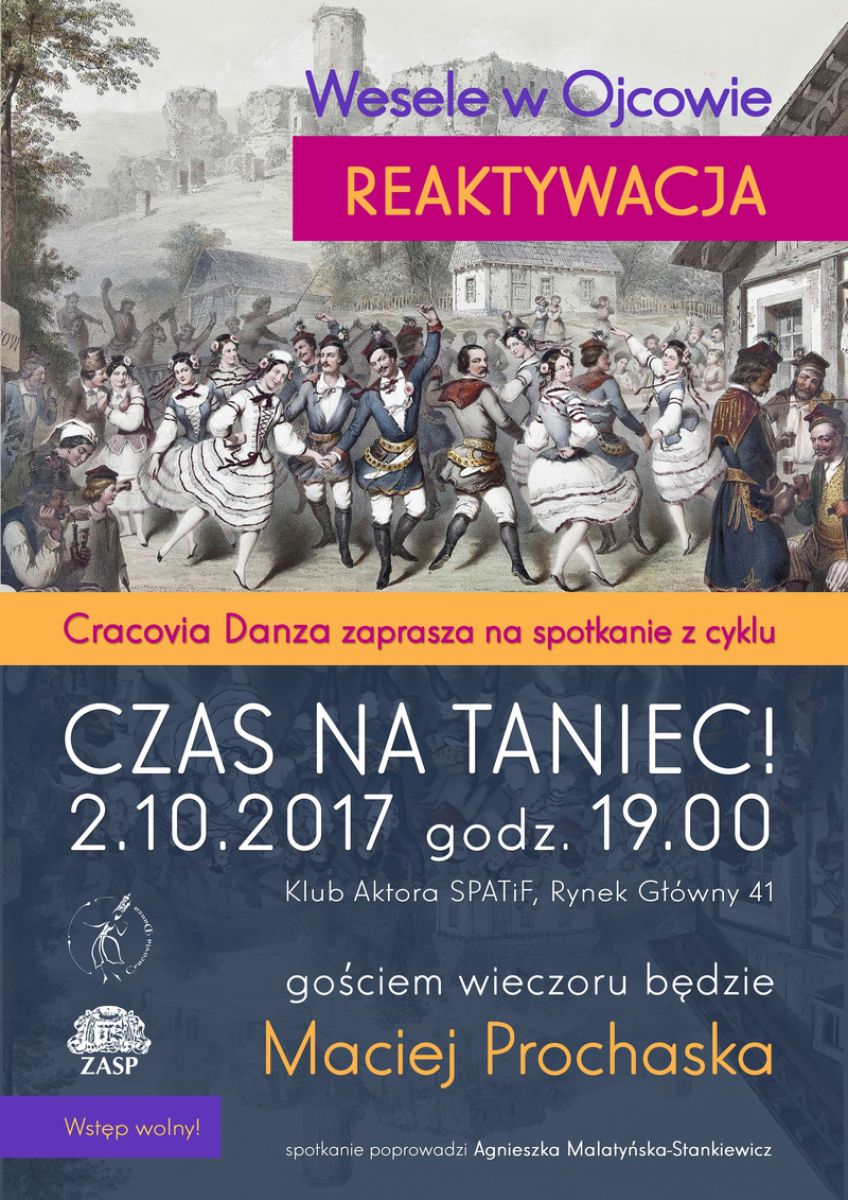 Balet Cracovia Danza w lipcu tego roku dokonał rejestracji zrekonstruowanej partytury pierwszego polskiego baletu narodowego Wesele w Ojcowie. Płytę nagrał zespół instrumentów dawnych The Violin Consort pod kierunkiem Zbigniewa Pilcha, zaœ rekonstrukcji dzieła dokonał Maciej Prochaska, muzykolog z Instytutu Kolberga w Poznaniu. I właœnie temu przedsięwzięciu będzie poœwięcony kolejny, a pierwszy w tym sezonie artystycznym odcinek spotkania CZAS NA TANIEC!, cyklu Baletu Cracovia Danza. Goœciem spotkania zatytułowanego Wesele w Ojcowie reaktywacja, które odbędzie się w poniedziałek, 2 paŸdziernika, o godz. 19, w Klubie Aktora SPATiF (Rynek Główny 41) będzie Maciej Prochaska. Zdradzi on nie tylko tajemnice odtwarzania partytury, ale także wskaże Ÿródła bez których rekonstrukcja nie byłaby możliwa. Spotkanie, którego współorganizatorem jest Odział ZASP w Krakowie, poprowadzi Agnieszka Malatyńska-Stankiewicz.