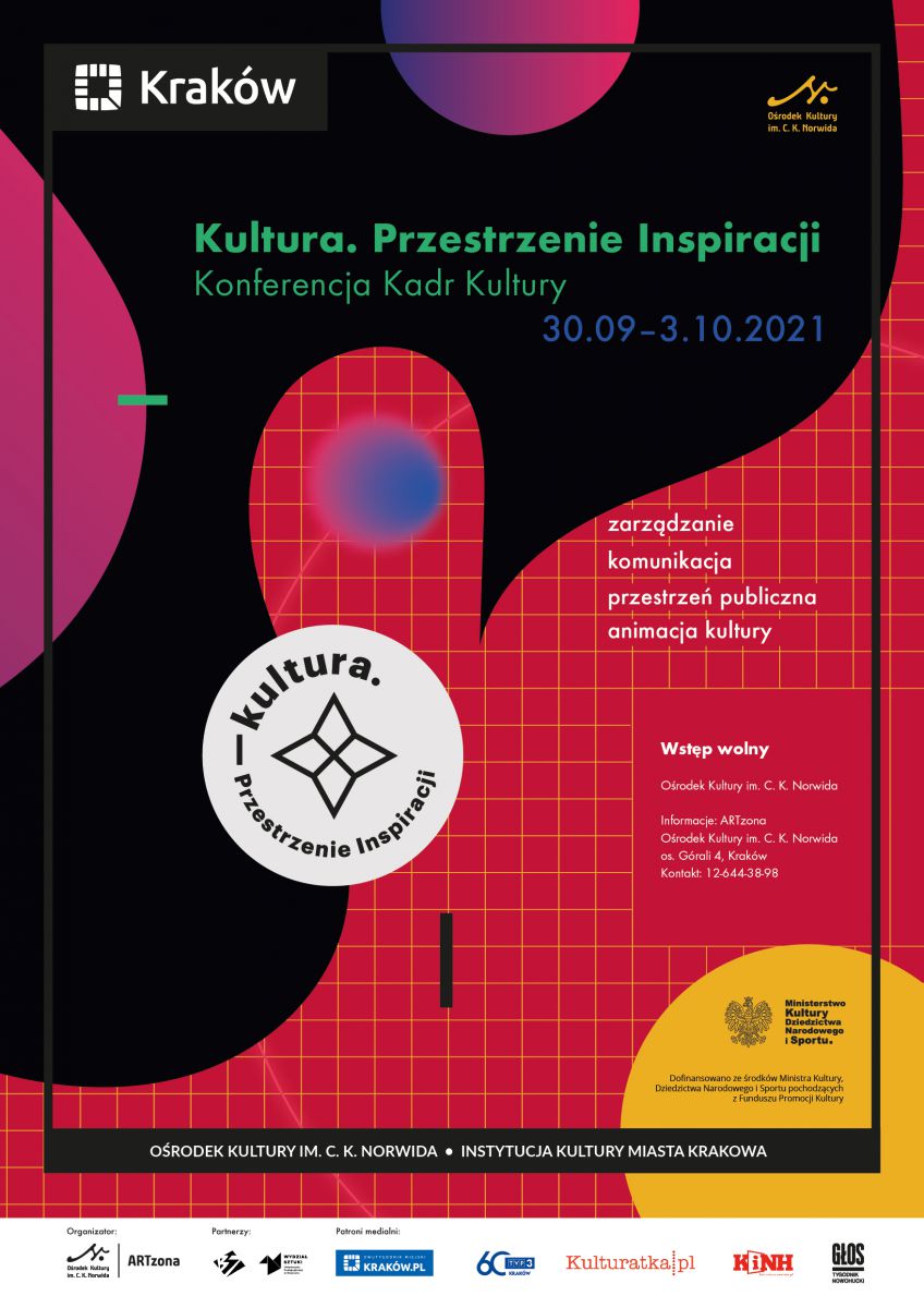 KULTURA. PRZESTRZENIE INSPIRACJI to gigantyczna dawka wiedzy dla animatorów, menadżerów, instruktorów, twórców, aktywistów oraz studentów kształcšcych się w obszarze animacji i edukacji kulturalnej. To spotkania z autorytetami w zakresie zarzšdzania w kulturze, ekspertami marketingu, praktykami w obszarze animacji kultury, a także znawcami przestrzeni publicznej. To cztery dni wykładów i zajęć, paneli dyskusyjnych i warsztatów.