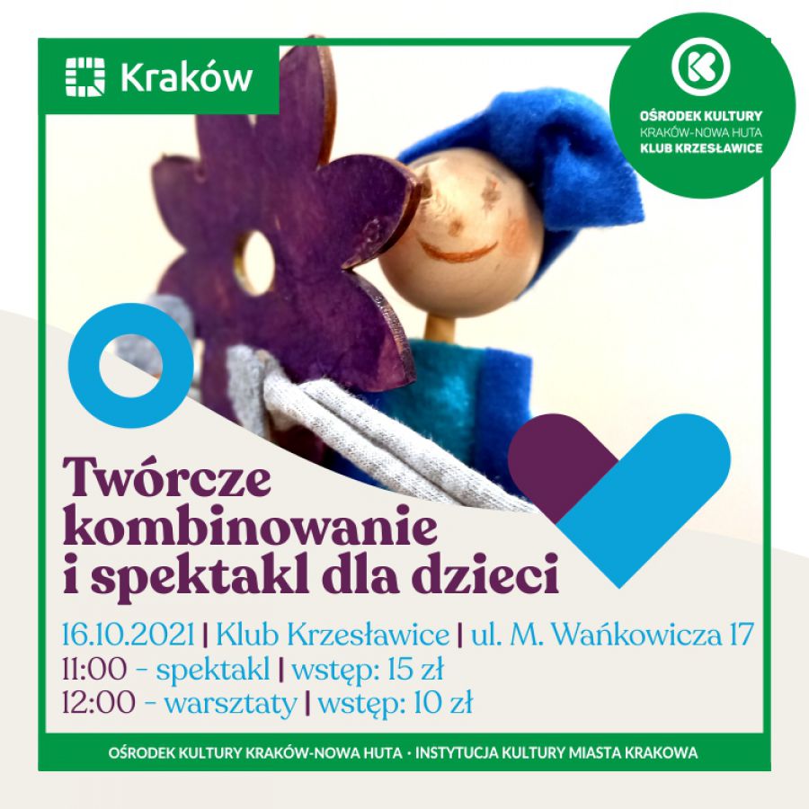Jesień dla dzieci zapowiada się wesoło i kolorowo. A zadba o to Klub Krzesławice, który organizuje warsztaty Twórcze kombinowanie i zaprasza wszystkie dzieciaki do kreatywnej zabawy. 16 padziernika o godz. 11:00 przedstawienie "Prawdziwy skarb" zaprezentuje Teatr Eden z Wieliczki, a o 12:00 mamy w planach maksymalnie wykorzystać możliwoci