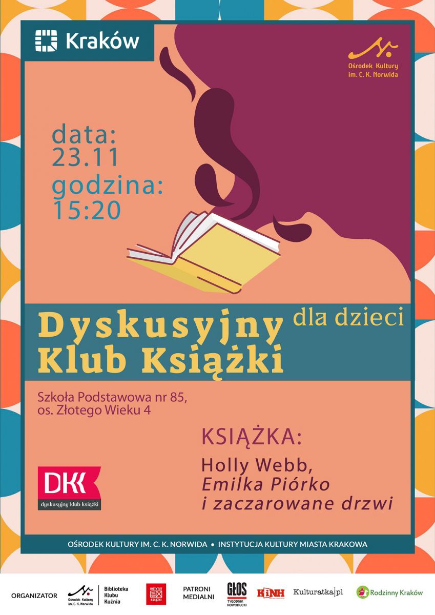 Podczas listopadowego spotkania Dyskusyjnego Klubu Ksiki dla dzieci uczestnicy bd rozmawia na temat ksiki Holly Webb, zatytuowanej Emilka Pirko i zaczarowane drzwi. Prowadzenie: Magdalena Harasimowicz-Moksa.