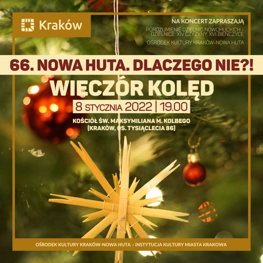 Kolędowanie odbywa się w ramach istniejšcego już siedemnaœcie lat cyklu Nowa Huta. Dlaczego Nie?!. Nowohuckie spotkania sš doskonałš okazjš zaprezentowania ciekawej historii nowohuckich dzielnic i bogatej oferty kulturalnej proponowanej przez Oœrodek Kultury Kraków-Nowa Huta. Dyrektorem artystycznym cyklu jest Lidia Jazgar. Organizatorzy: Porozumienie Dzielnic Nowohuckich - Dzielnice: XIV Czyżyny, XVI Bieńczyce, Oœrodek Kultury Kraków-Nowa Huta.