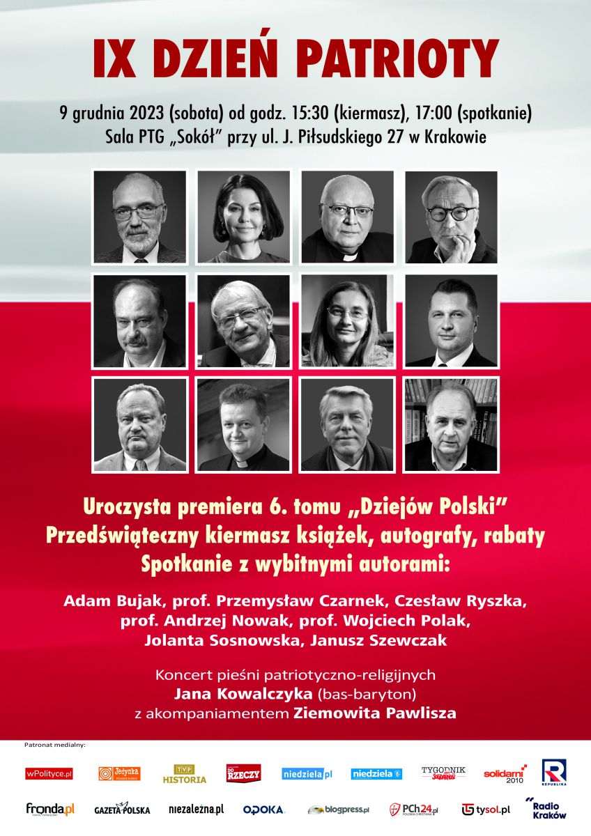 Organizowany przez wydawnictwo Biały Kruk dziewiąty już z kolei Dzień Patrioty jest wydarzeniem, które na stałe wpisało się w pejzaż polskiej kultury. Jest to spotkanie z wybitnymi twórcami polskiego życia kulturalnego, artystycznego, społecznego i religijnego, a jego punktem kulminacyjnym jest wręczenie nagrody pt. „Patriota Roku”. Kto nim zostanie tym razem? Organizatorzy oczywiście trzymają to w tajemnicy do ostatniej chwili; laureat zostanie ujawniony dopiero podczas wręczania, czyli w sobotę 9 grudnia w historycznej sali „Sokoła” w Krakowie (od godz. 16:30) przy ul. Marszałka Józefa Piłsudskiego 27. Przewodniczącym jury, które przyznaje nagrodę, jest prof. Andrzej Nowak. W kuluarach mówi się, że szanse na nagrodę mają m.in. znani aktorzy Halina Łabonarska lub Jerzy Zelnik, ambasador przy ONZ prof. Krzysztof Szczerski, Straż Graniczna (jako instytucja) czy też autor „Historii i Teraźniejszości” prof. Wojciech Roszkowski.