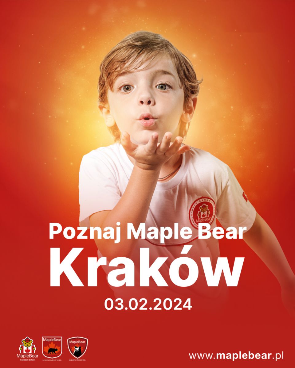 3 lutego 2024 r. (sobota) w hotelu Radisson Blu odbędzie się Dzień Otwarty Maple Bear - pierwszego kanadyjskiego przedszkola, zerówki i szkoły podstawowej w Krakowie. To idealna okazja do tego, aby spotkać się osobiście, porozmawiać z naszym zespołem i poznać nasz program i metody nauczania.