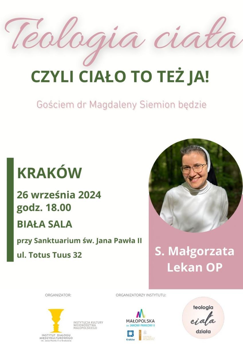 Już 26 września, wspaniały gość: Siostra Małgorzata Lekan, dominikanka, "kobieta - ogień" opowie o tym, że ciało to także "ty" i jak nie bać się swojej cielesności i seksualności.