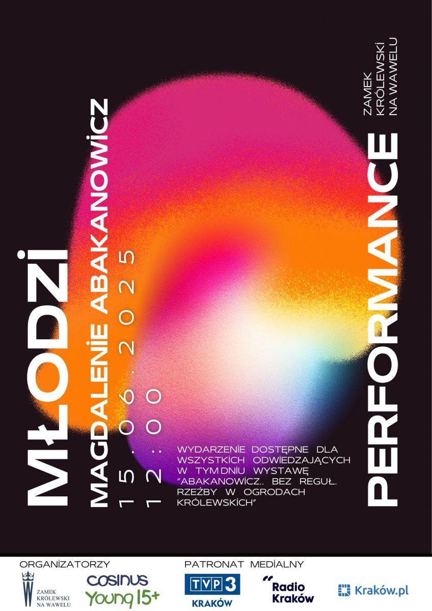 Dyrekcja, nauczyciele i młodzież z Liceum Sztuk Plastycznych Cosinus w Krakowie oraz Zamek Królewski na Wawelu zapraszają 15 czerwca 2025 r. na performance dostępny dla wszystkich odwiedzających w tym dniu wystawę „Abakanowicz. Bez reguł. Rzeźby w Ogrodach Królewskich”. W Ogrodach Królewskich uczestnicy wydarzenia spotkają się ze sztuką żywą, będącą osobistym przekazem młodych artystów zainspirowanych dziełami Magdaleny Abakanowicz.