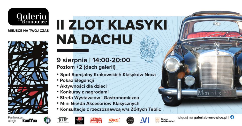 II Zlot Klasyki na Dachu odbędzie się w sobotę, 9 sierpnia, w godz. 14:00-20:00, na parkingu zewnętrznym Galerii Bronowice. Wstęp wolny.