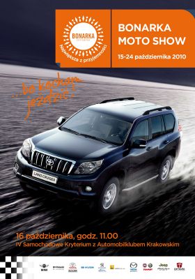 Moto Show jest wyjštkowš okazjš, by w jednym miejscu zobaczyć, porównać, a nawet zakupić samochody z oferty najlepszych dealerów regionu. W ramach Moto Show w Bonarka City Center odbyły się już wystawy samochodów sportowych, rodzinnych, miejskich, osobowych z homologacjš ciężarowš oraz kabrioletów. Kryteria Samochodowe organizowane sš przez Automobilklub Krakowski.