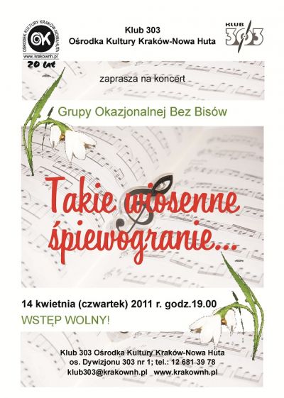14 kwietnia (czwartek) 2011 r. o godz. 19.00 odbędzie się kolejny koncert Grupy Okazjonalnej Bez Bisów.
