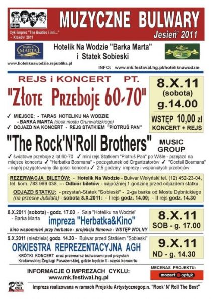 W sobotę 8.X.2011 r w ramach tej imprezy, Hotelik Na Wodzie - Barka Marta, usytuowana niedaleko Mostu Grunwaldzkiego zaprasza miłoników muzycznych klimatów na spotkanie z przebojami lat 60-70, podczas przygotowanego koncertu pt. "Złote Przeboje 60-70", w wykonaniu zespołu "The Rock'N'Roll Brothers".