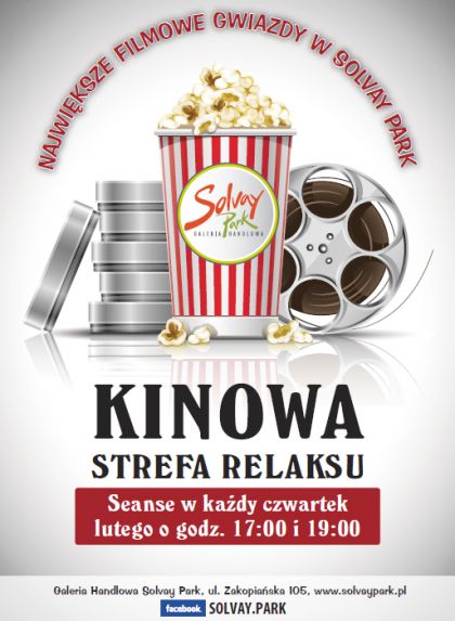 Największe filmowe gwiazdy w lutym zawitajš do GH Solvay Park. W każde czwartkowe popołudnie lutego ( 2, 9, 16 i 23.02.) Solvay Park zaprasza do Kinowej Strefy Relaksu. Seanse o godz. 17:00 i 19:00.