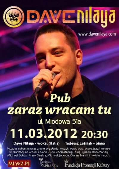 Pub Zaraz Wracam Tu, ul. Miodowa 51a zaprasza na koncert zespołu Dave Nilaya Due, w składzie: