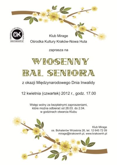 Wstęp za zaproszeniami, które można odbierać w Klubie od 28 marca do 2 kwietnia 2012 r.