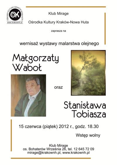 Tym razem podczas wernisażu wystawy malarstwa olejnego swoje prace zaprezentujš Małgorzata Waboł oraz Stanisław Tobiasz.