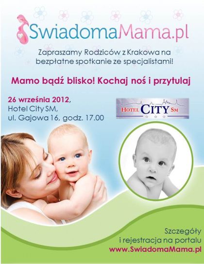 Już 26 wrzenia w Hotelu City SM odbędzie się spotkanie dla rodziców z Krakowa z udziałem psychologa i doradcy laktacyjnego. Odbędzie się także pokaz wišzania chust połšczony z krótkim warsztatem.