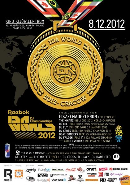 Na imprezie pojawiš się reprezentacje wszystkich startujšcych w Reebok IDA WORLD DJ CHAMPIONSHIPS krajów, które już od pištku stacjonować będš w Krakowie. Zapowiada się więc naprawdę goršcy, międzynarodowy turntablistyczny wieczór!