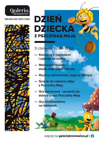 Międzynarodowy Dzień Dziecka to jedno z tych świąt w roku, na które najmłodsi czekają z niecierpliwością. Galeria Bronowice zadbała więc o to, aby podczas tegorocznych obchodów zapewnić maluchom moc niezapomnianych wrażeń. W ramach nadchodzącego wydarzenia zaplanowano liczne atrakcje, a potowarzyszy im jedna z najbardziej lubianych bajkowych postaci – ponadczasowa Pszczółka Maja. 3 czerwca, w godz. 12:00-18:00, dzieci będą mogły m.in. zajrzeć do studia bajkowych tatuaży, wziąć udział w malowaniu buziek czy grze planszowej, która powie jak dobrze znają bohaterkę dnia. Chętni sprawdzą też swoją sprawność rzucając „pyłkiem pszczelim”, pokonując tor przeszkód i pajęczy labirynt oraz biorąc udział w wyścigu na samochodzikach grawitacyjnych. Nie zabraknie również konkursów z nagrodami, gier multimedialnych, zabawy na scenie oraz możliwości zrobienia pamiątkowego zdjęcia na ściankach z Pszczółką Mają.