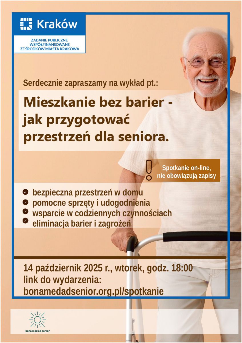 Wykład on-line "Mieszkanie bez barier - jak przygotować przestrzeń dla seniora”.